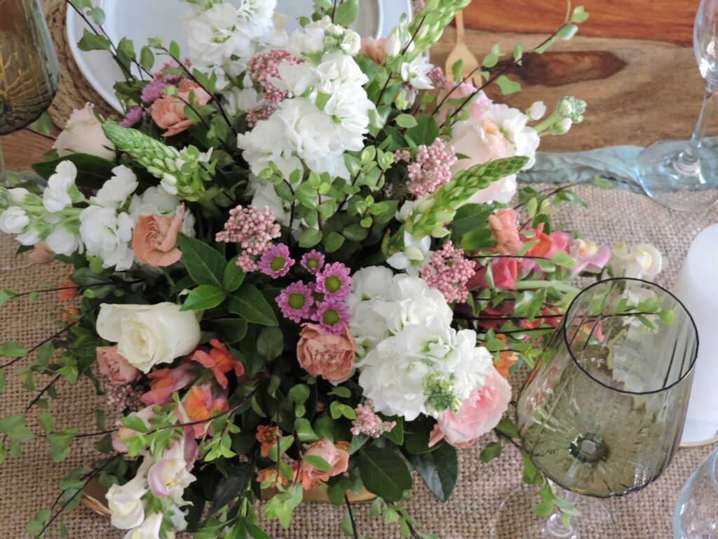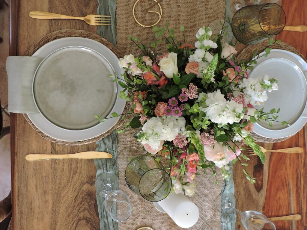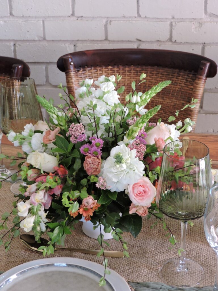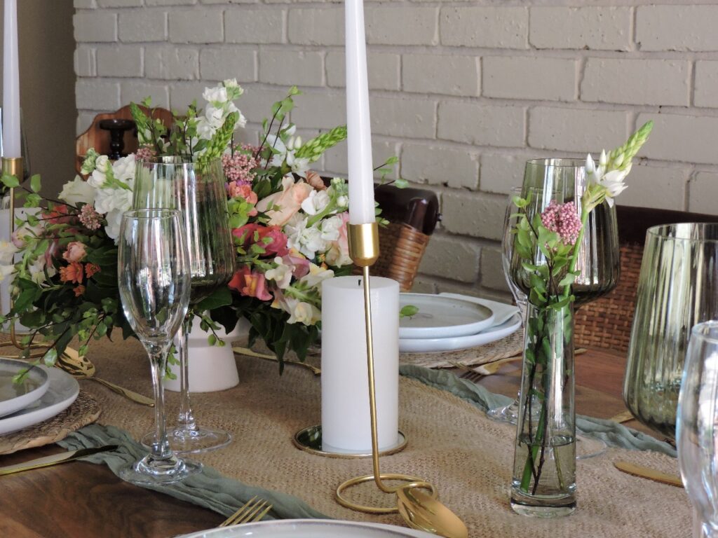 This beautiful birthday table setup exudes effortless elegance and joyful charm. Soft pastel blooms mixed with fresh greenery create a vibrant yet refined atmosphere, perfect for a special celebration. The floral arrangements bring life and colour to the rustic table setting, while delicate glass vases and candles add a touch of sophistication. Designed to feel both warm and uplifting, this floral display transforms any gathering into a stylish and memorable occasion.