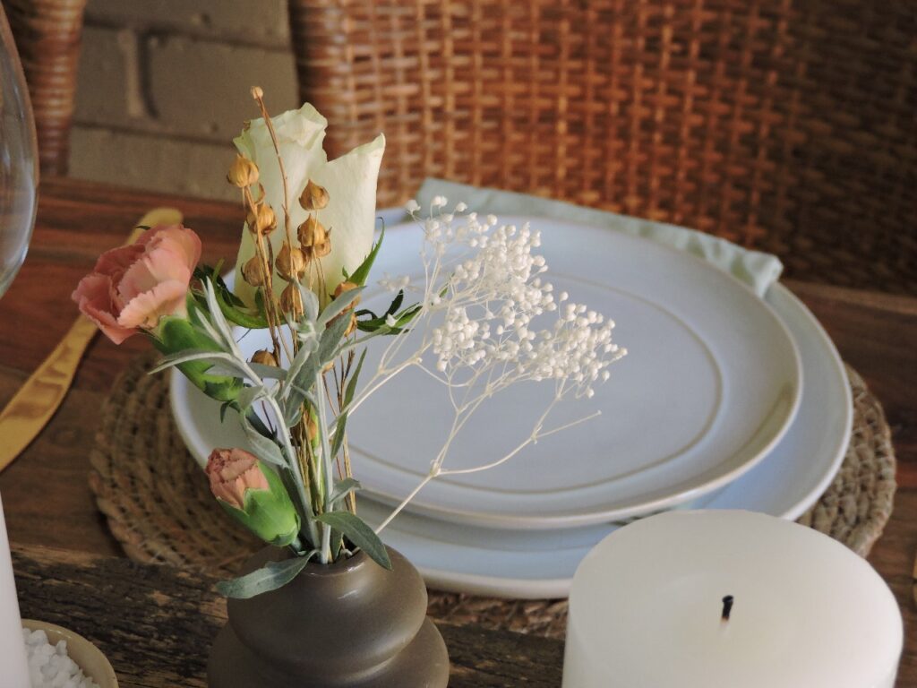 This intimate wedding table setting captures the beauty of simplicity and natural elegance. Neutral tones and soft textures come together to create a warm, inviting atmosphere. Delicate dried florals and soft greenery add a touch of organic charm, perfectly complementing the rustic wooden elements and woven details. The minimal yet thoughtful floral accents bring a sense of calm sophistication — ideal for a couple who loves understated beauty and timeless style.